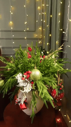 Widely Used: This Christmas norfolk pine stems are the perfect decoration for Christmas, New Year, parties and can be used indoors or outdoors. It can be placed in vases or jars to decorate places such as tables, fireplaces, furniture and doors, and can also be used for DIY crafts, wreaths, etc.